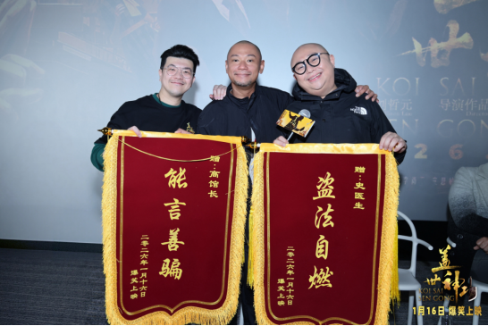 观众们不仅对影片的无厘头笑点表示高度认可,更对主创团队的真诚与投入赞不绝口。监制林敏骢“傻得真诚”的创作理念、罗家英“想打导演却演得过瘾”的幕后趣事、钟骏儿的转型突破、以及金刚与BOB现场获赠搞笑锦旗等高能场面,都成为观众津津乐道的路演亮点,营造了极强的仪式感和欢乐共鸣,路演现场的笑声与好评不断,被众多网友标记为“2026年开年必看的第一部欢乐大片”。
